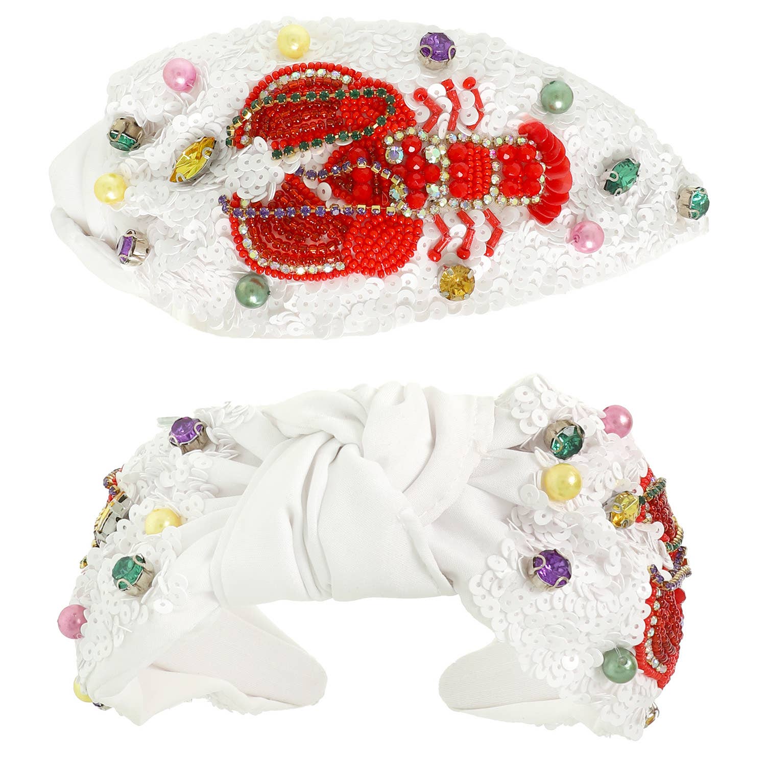 Elevate your Mardi Gras look with our jeweled headband. Adorned with vibrant gemstones, this accessory adds a touch of glamour to your outfit. Perfect for parades and parties, it's a must-have to celebrate in style. Let our headband be the crown jewel of your festivities.